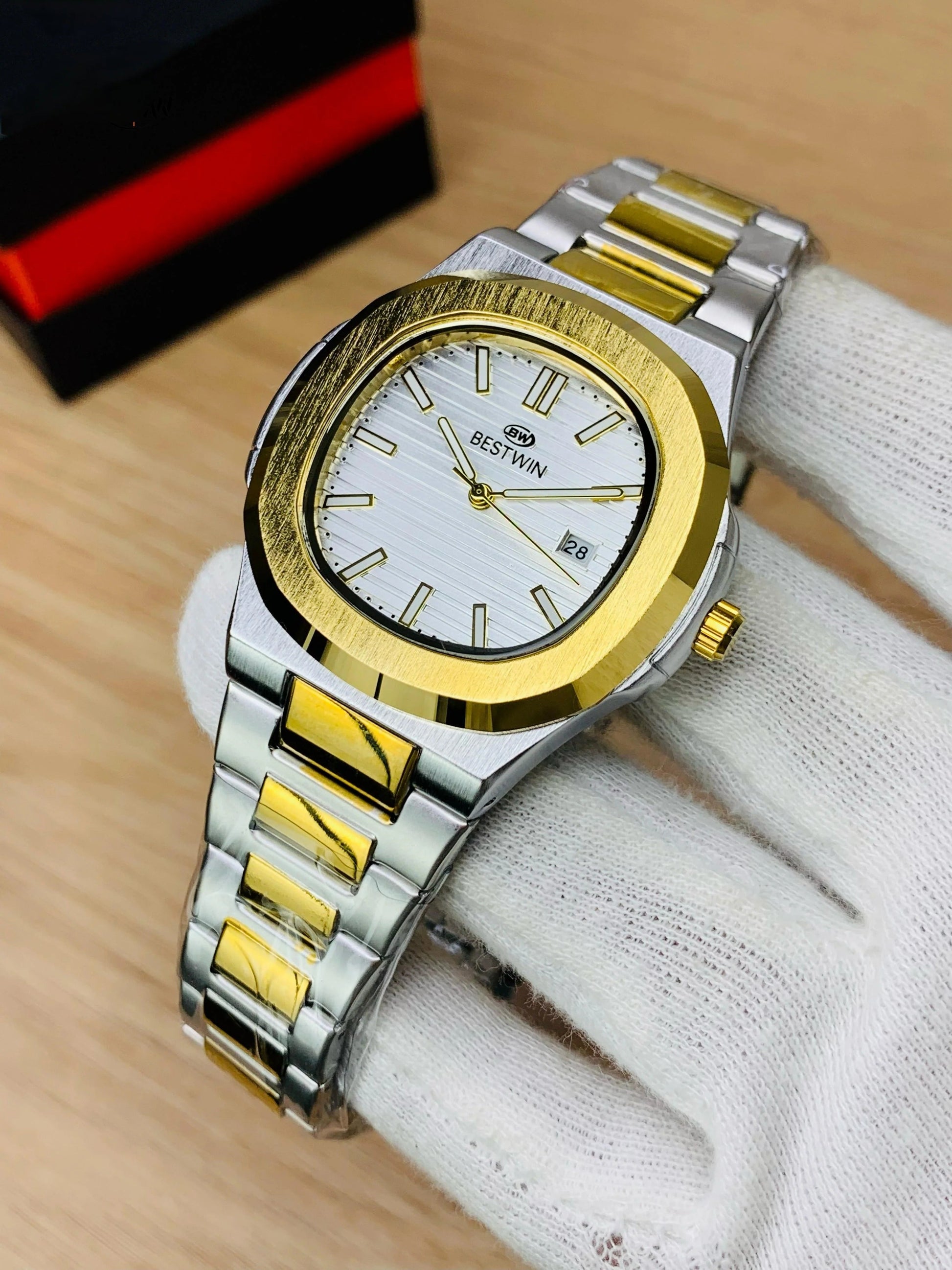 BestWin Original Gent's Watches - Patek Model with Date Function, Stainless Steel Chains
